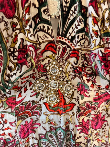 The Nora Kaftan is an elegant piece crafted in luxurious silk velour. This stunning dress features a striking open back design paired with delicate embroidery positioned just beneath the cutout, creating a sophisticated focal point. Perfect for special occasions or elevated everyday wear, the combination of soft fabric and intricate detailing makes this kaftan a timeless addition to any wardrobe.