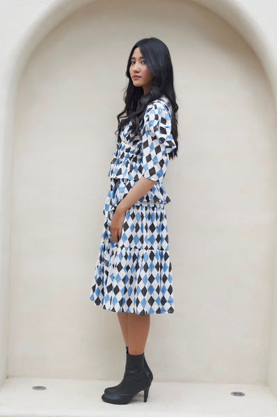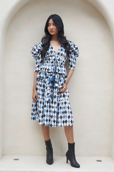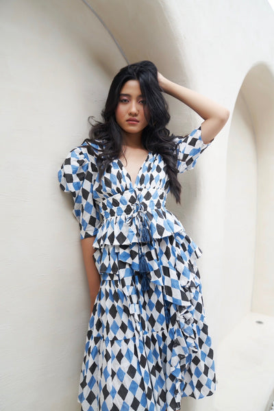 The Emma Ruffle dress features a stretchable waist for a comfortable and flattering fit, complemented by a stylish slit on the left side that adds a subtle edge to its elegant design. Ideal for both casual and formal occasions, this dress offers ease of movement without sacrificing sophistication.