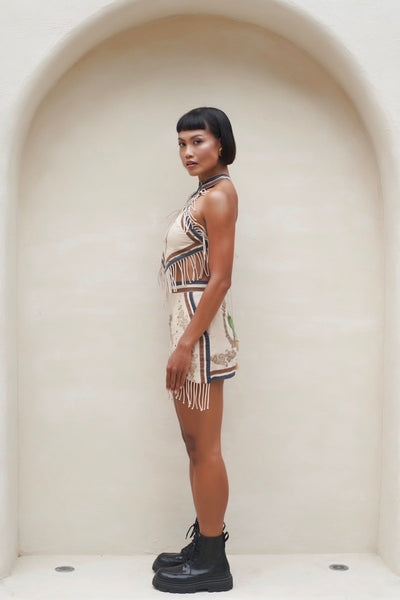 Saddle up in style with this vintage-inspired cowgirl mini skirt that brings charm to your everyday wardrobe. Featuring functional pockets—a rare find in mini skirts—this piece combines practicality with that coveted rodeo aesthetic. The classic cut and timeless design make it the perfect statement piece to refresh your closet with effortless cowgirl attitude.