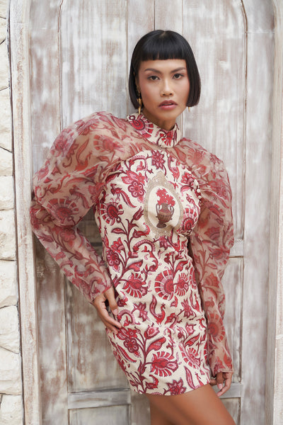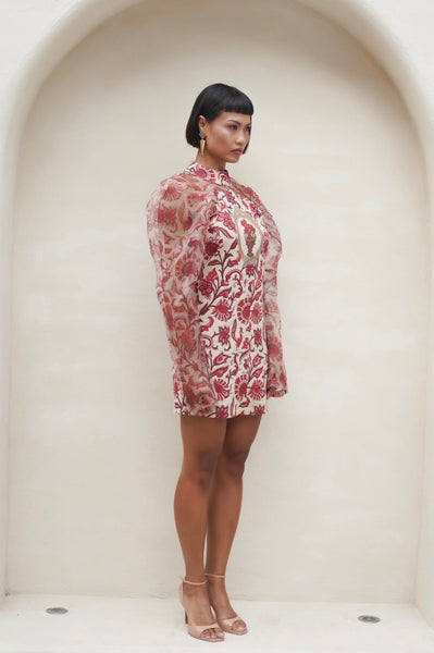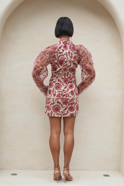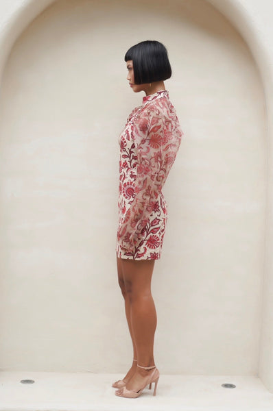 The Ruby Mini Dress combines elegance with contemporary style, perfect for your most memorable moments. This sophisticated piece features a flattering mini silhouette paired with graceful long sheer sleeves that add an ethereal touch. The sheer sleeves provide delicate coverage while maintaining an airy, refined aesthetic—ideal for special occasions where you want to make a lasting impression. Whether it's an evening event, celebration, or upscale gathering, this dress delivers timeless glamour with modern flair.